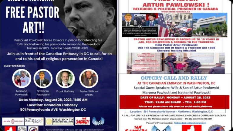 WASHINGTON, D.C. — August 21, 2023 — Pastor Artur Pawlowski, one of Canada’s most outspoken and bold advocates for freedom